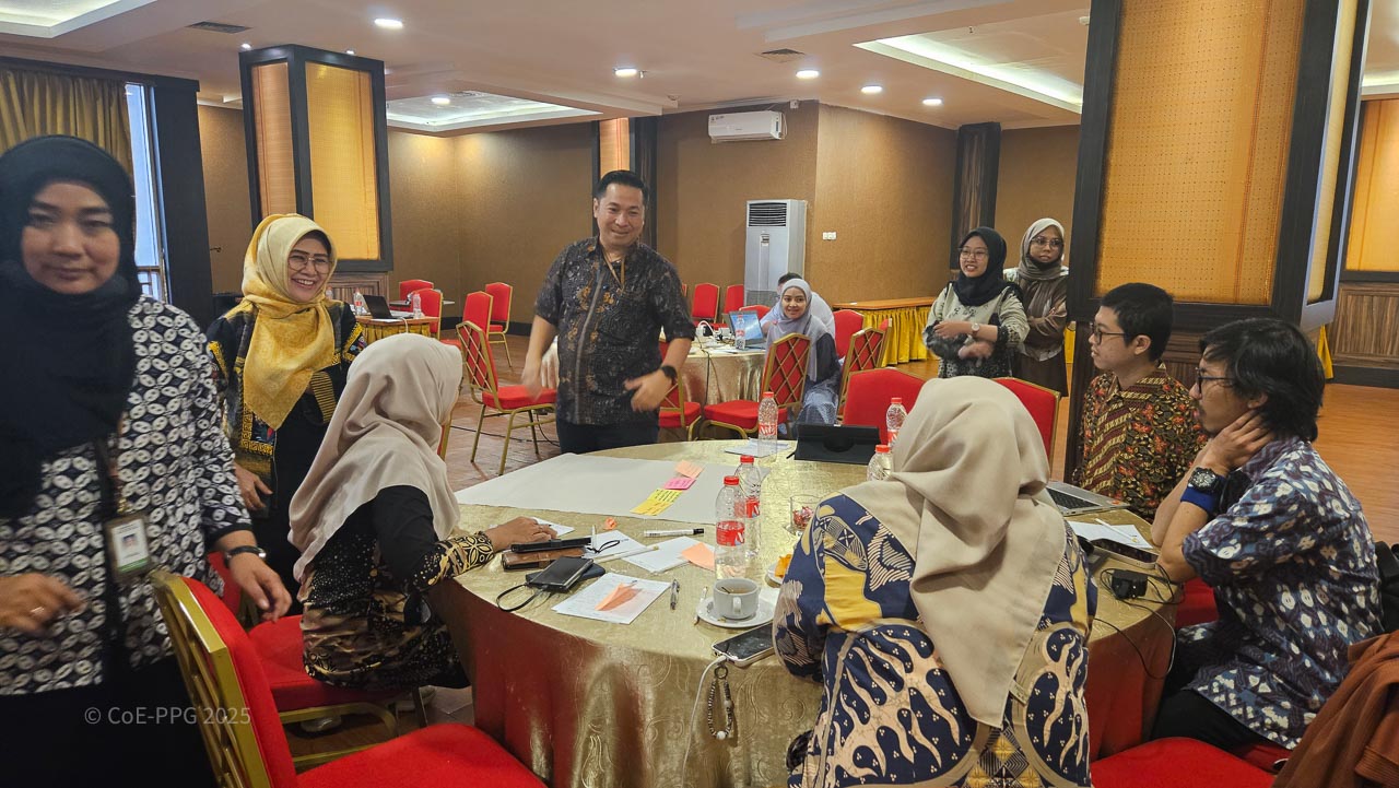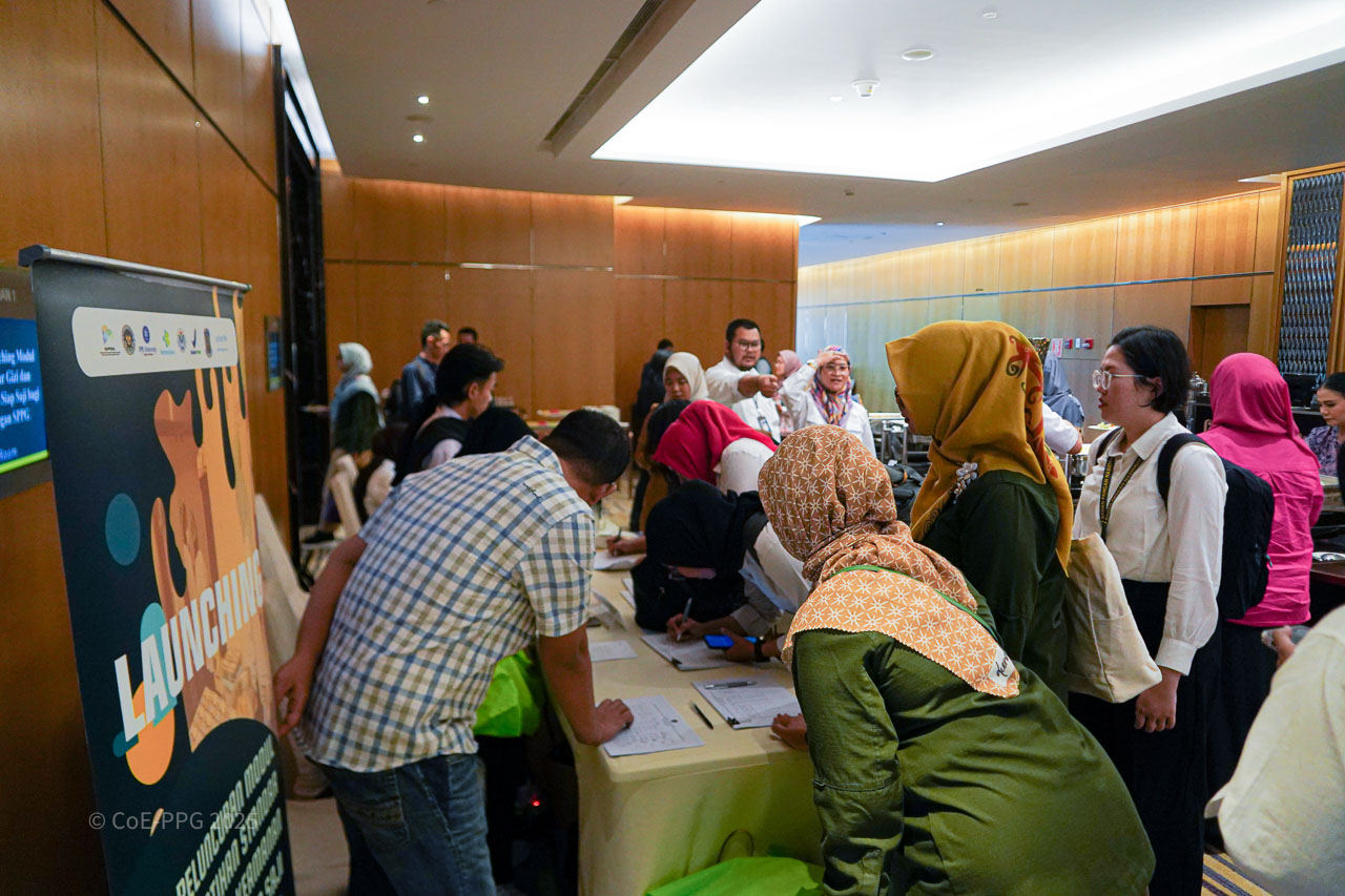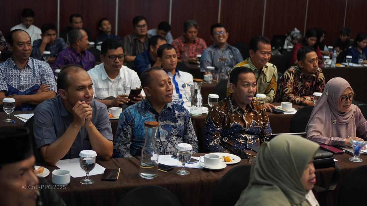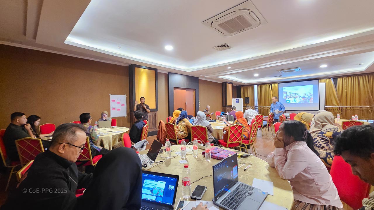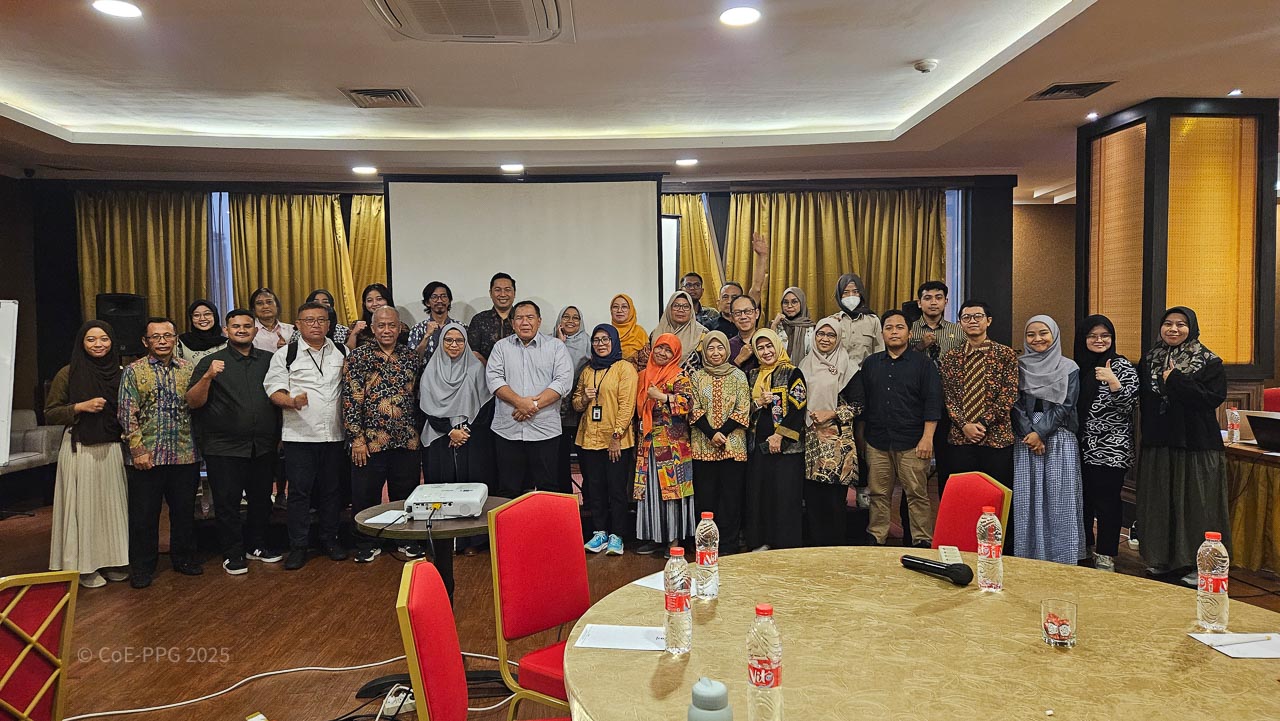 Halaman Galeri menampilkan dokumentasi visual berbagai kegiatan CoE-PPG, mulai dari pelatihan, riset lapangan, diskusi, hingga kolaborasi dengan mitra. Galeri ini berfungsi sebagai arsip visual yang mencerminkan proses, pembelajaran, dan dampak kegiatan CoE-PPG di tingkat nasional dan regional.