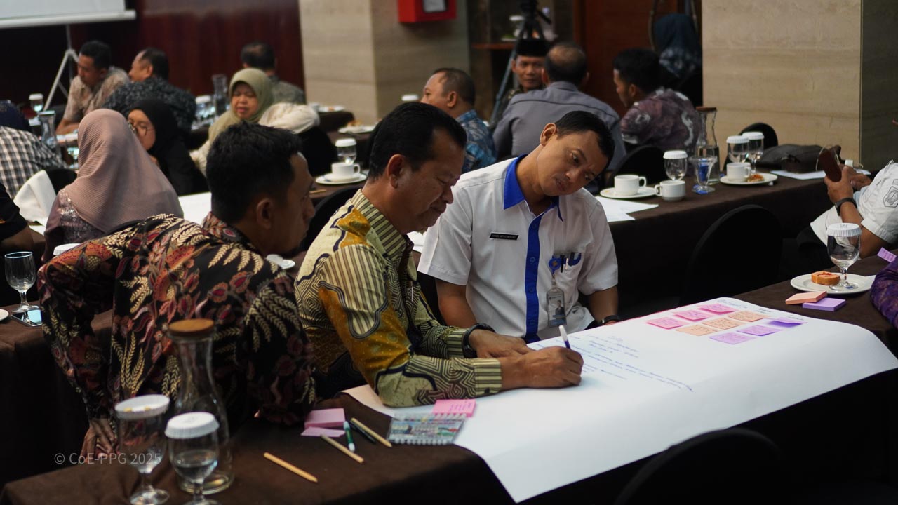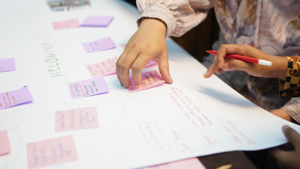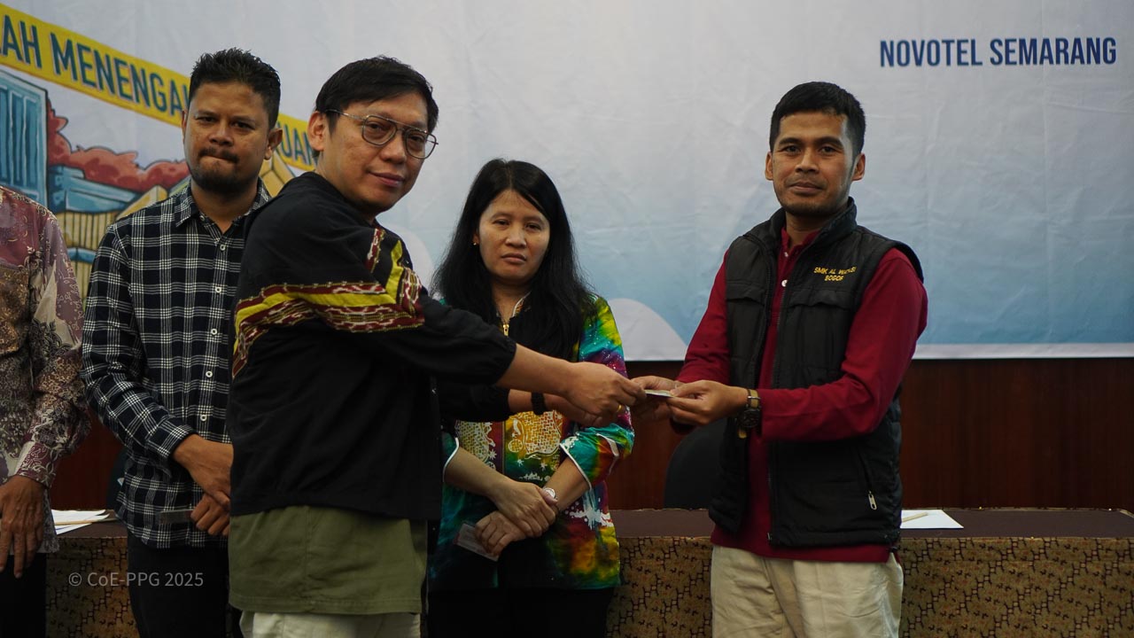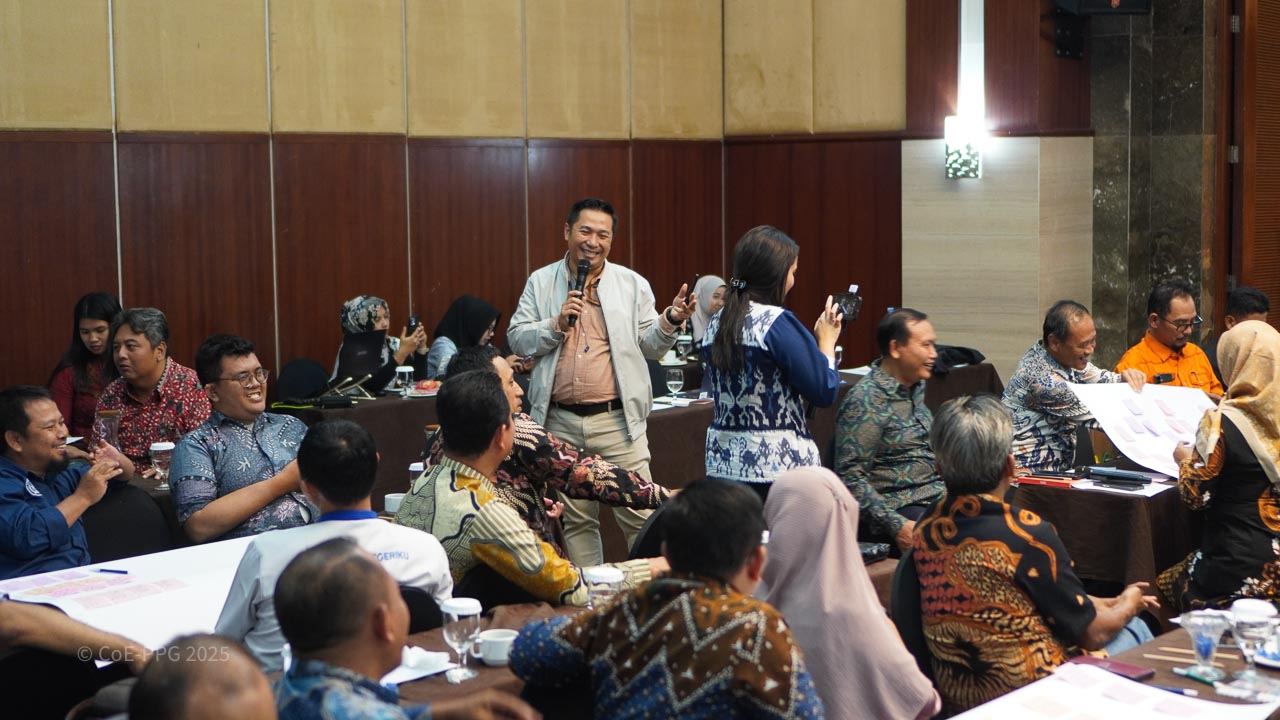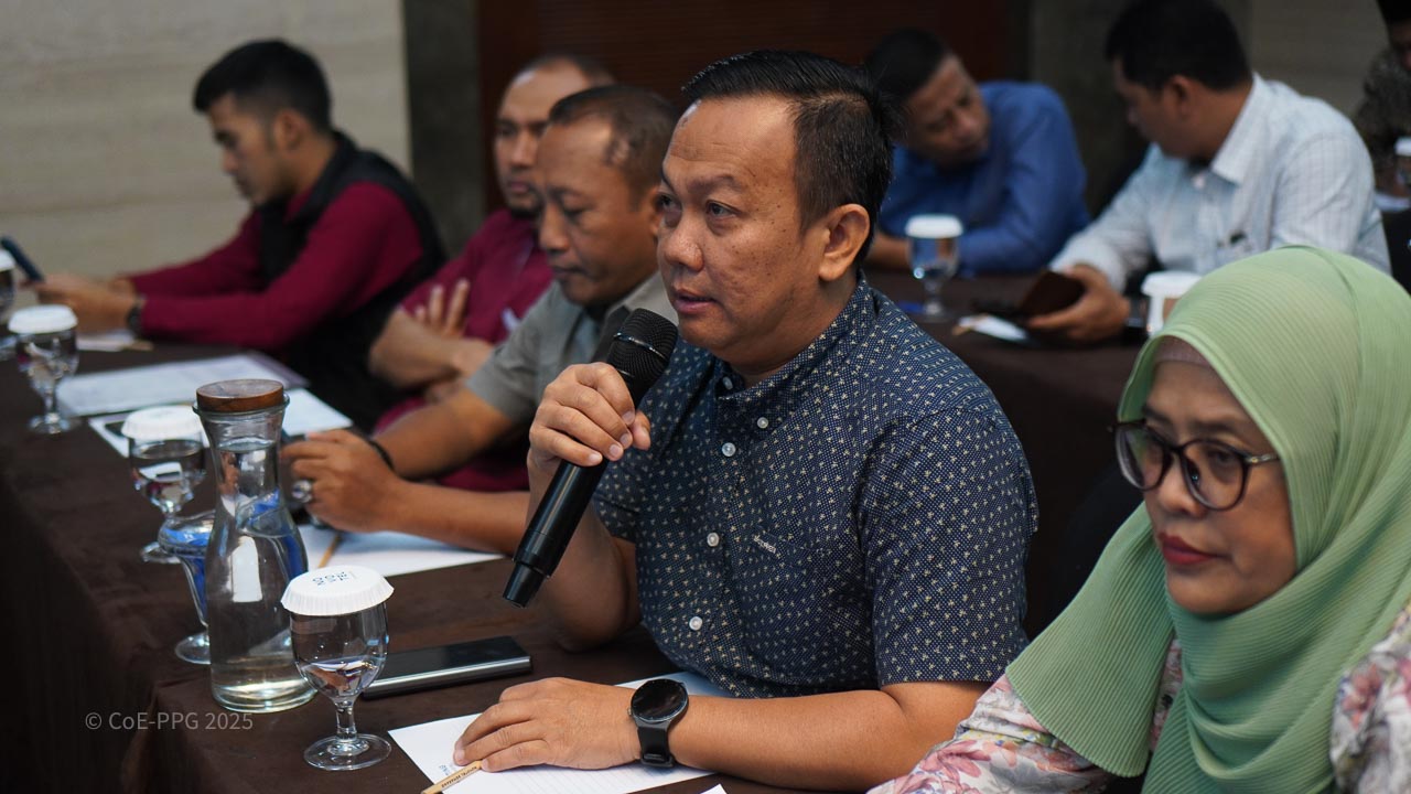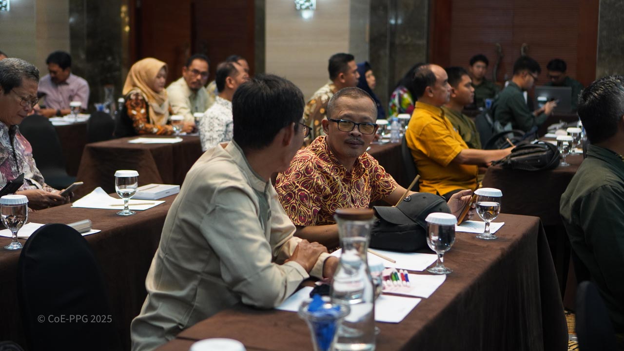 Halaman Galeri menampilkan dokumentasi visual berbagai kegiatan CoE-PPG, mulai dari pelatihan, riset lapangan, diskusi, hingga kolaborasi dengan mitra. Galeri ini berfungsi sebagai arsip visual yang mencerminkan proses, pembelajaran, dan dampak kegiatan CoE-PPG di tingkat nasional dan regional.
